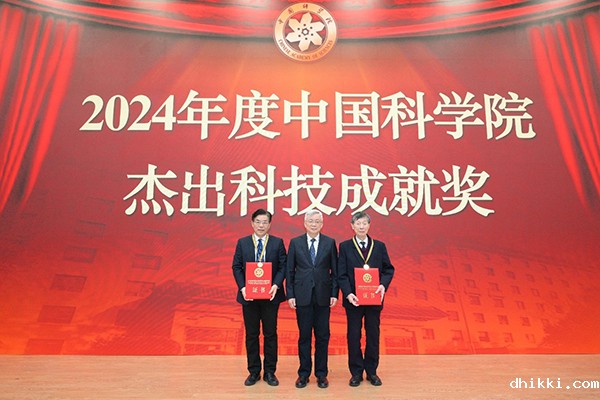 侯建国为获得2024年度中国科学院杰出科技成就奖个人成就奖的陈立泉院士、陈仙辉院士颁奖