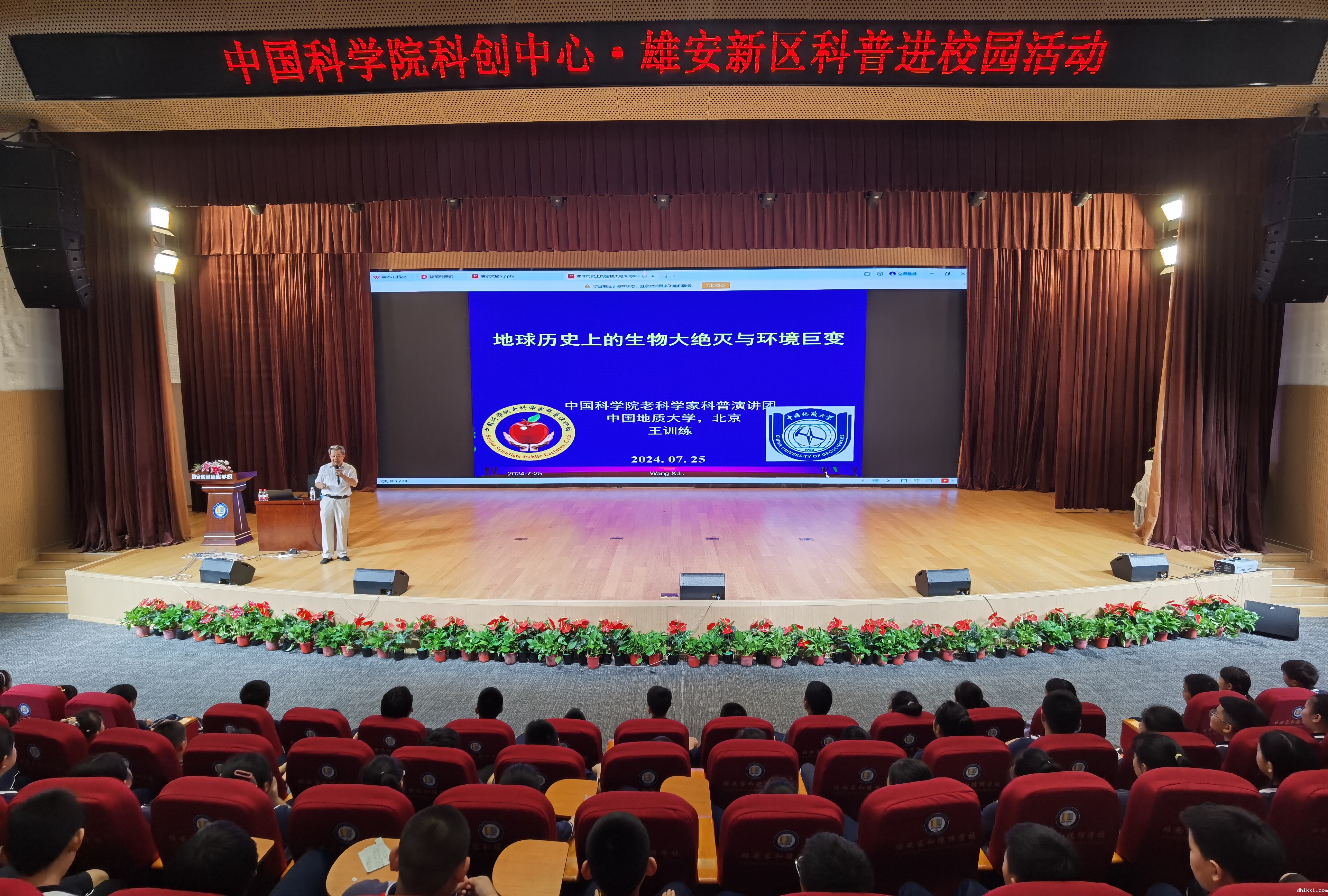 亿万年前的海百合究竟是动物还是植物?我国的“歼20”战斗机到底有多先进?载人火箭和非载人火箭到底有啥区别?微生物是如何在漫长岁月中不断演化的?人类为何要去仰望星空?光线进入眼睛再到感知到图像,这中间经历了怎样的过程?7月22日-25日,来自中国科学院老科学家科普演讲团(以下简称科普演讲团)的石磊、杨海花、傅前哨、王训练4位专家,来自科创中心科技副校长团队的王乐、王波2位专家,不辞辛劳,冒着酷暑走进雄安新区3县27所中小学校,开展了27场精彩的科普报告,为雄安新区4700余名中小学生带来一场场科普的饕餮盛宴。