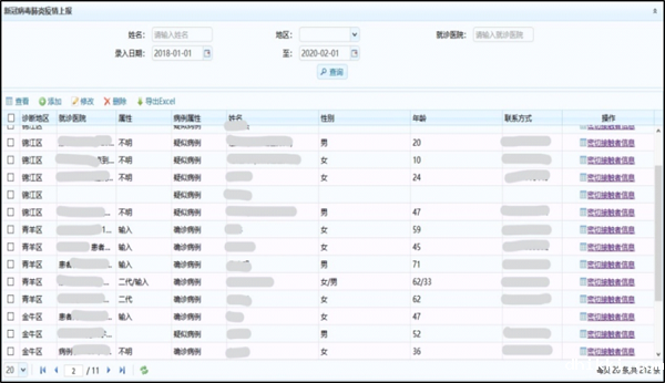 图:成都市新型冠状病毒确诊病例和密切接触者信息管理系统