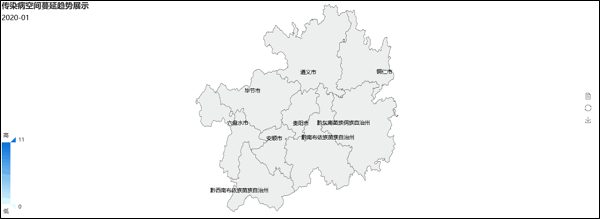 图:贵州省新型冠状病毒感染的肺炎发病数空间分布图