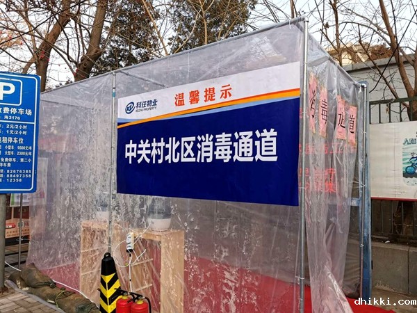 科住物业自制户外消毒通道在中关村北区科源社区投入使用,为居民提供消毒灭菌服务,得到社区居民的欢迎和好评。