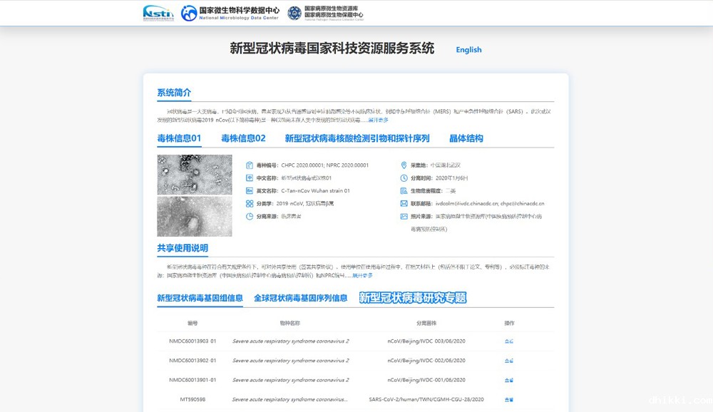 新型冠状病毒国家科技资源服务系统: