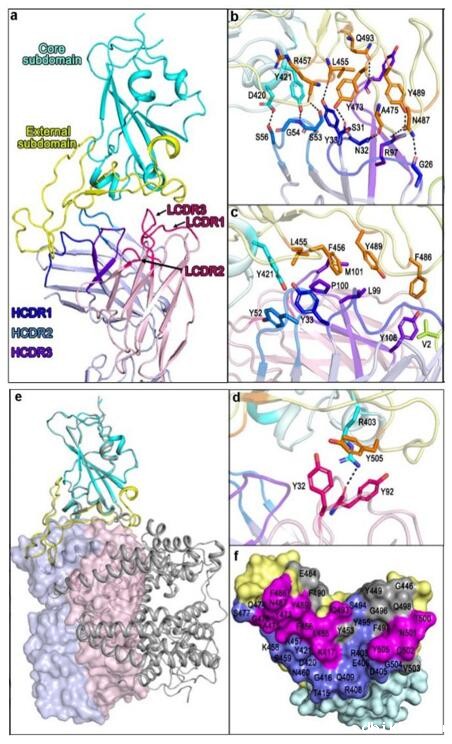 与此同时,研究团队解析了抗体-新冠病毒S蛋白复合物的高分辨率晶体结构,阐明了该中和抗体抑制病毒侵入动物细胞、阻断病毒感染的结构生物学机制。